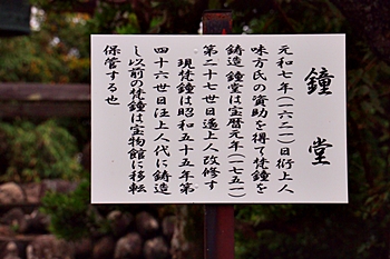 元和七年、日衍上人・味方氏の資助を得て、梵鐘を鋳造せる。