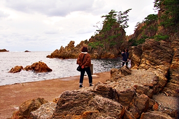 …との事ですけど、自然の力を改めて感じてしまいます。永い年月を要しまして現在の姿にと形成されましたのでしょうけど、見た感じがよく似ていますのが福井県の東尋坊=B