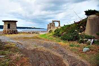 トラス橋≠横目に海岸方向に進んで行きますと、クレーン台座が2基。そして、海岸沿いにも1基が存在です。