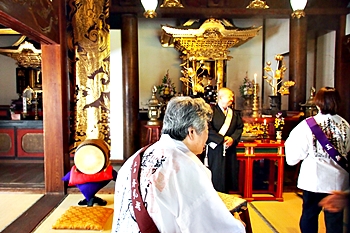 文久3年再建(1863)十二間(22m)四面の大堂で島内最大の堂宇。江戸期本堂建築の様式を今に残している。