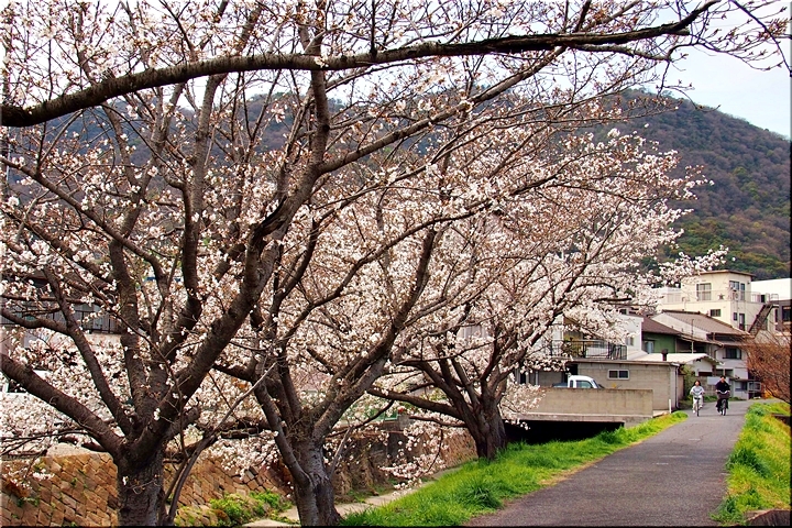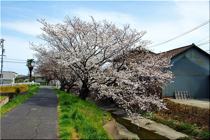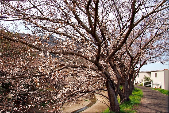 3/31(月)の昼食時、「集会所裏の水呑川土手のサクラ並木、豊年橋北側のサクラは満開だった…」と嫁さん。