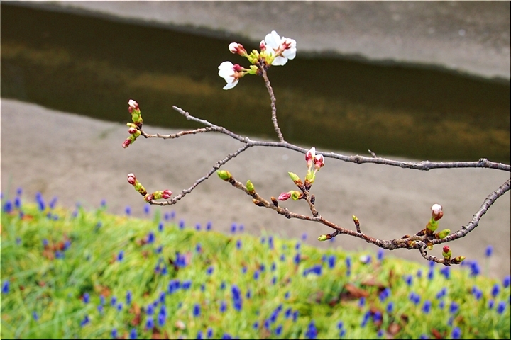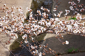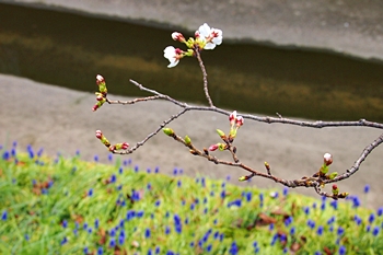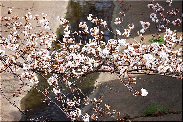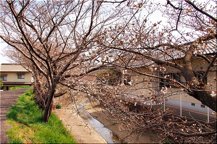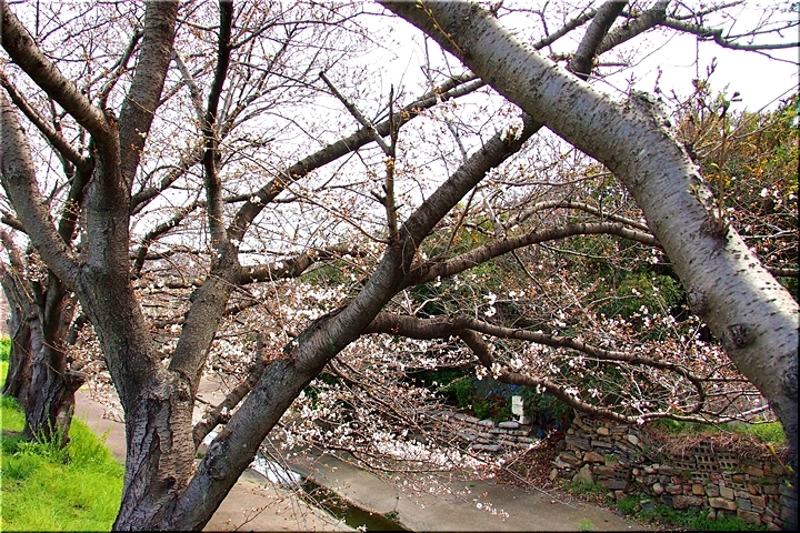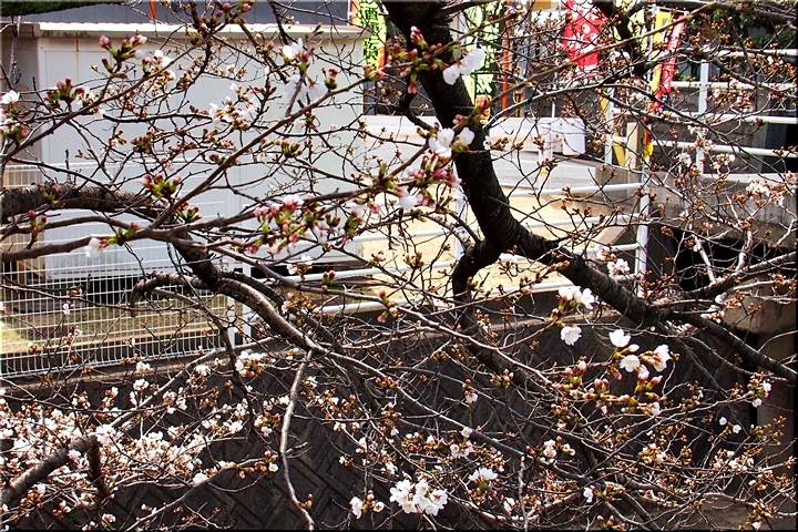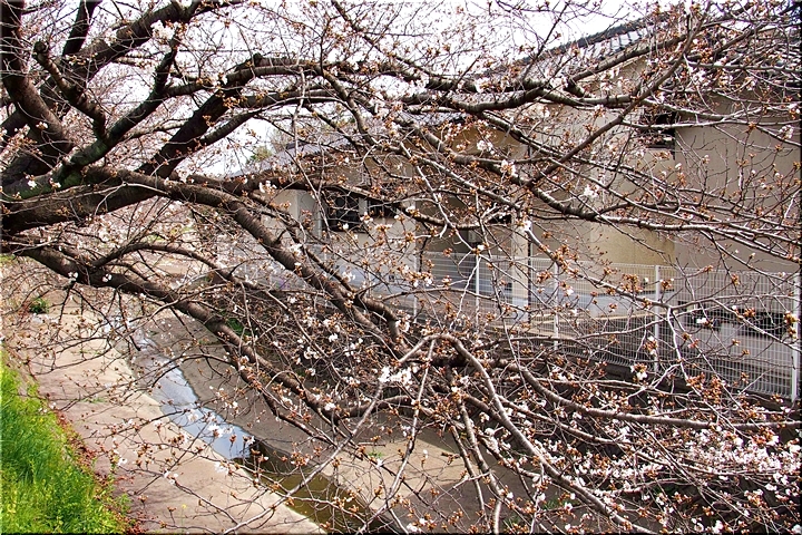 せっかくの水呑川土手サクラ並木の散策ですから、ついでに、豊年橋以南も見てみましょうか…毎年の事ですけど、予期しました通り、南側はサッパリ。満開となりますのは、来週半ば辺りとなりますでしょうか…