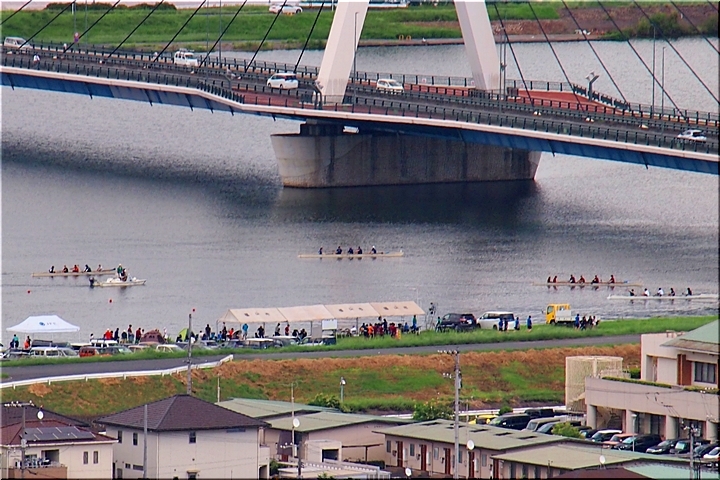 凡て終わりますと、我が町を眺望しながら暫し一服ですけど、芦田川川面では何の大会か分かりませんけどレガッタの開催中。スマホで福山ボート協会2025年スケジュール≠検索してみますと、ふ〜ん、「第43回芦田川レガッタ兼第32回福山市長杯レガッタ」の開催のようであります。