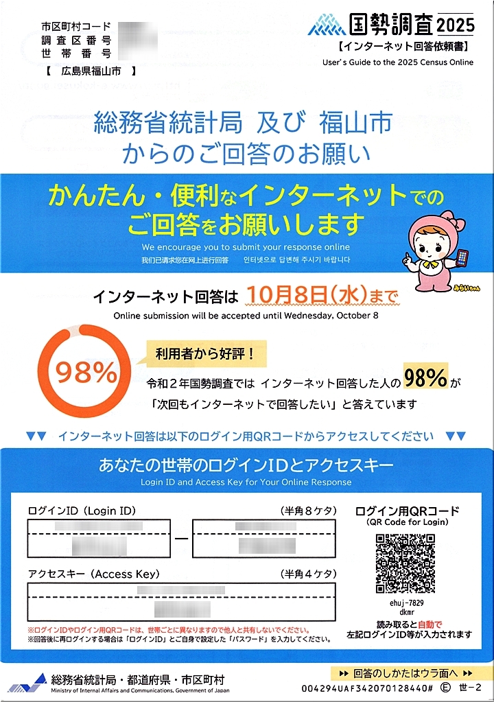 * 国勢調査は総務省(統計局)が所管しますが、実際の調査は各市区町村を通じて行われます。