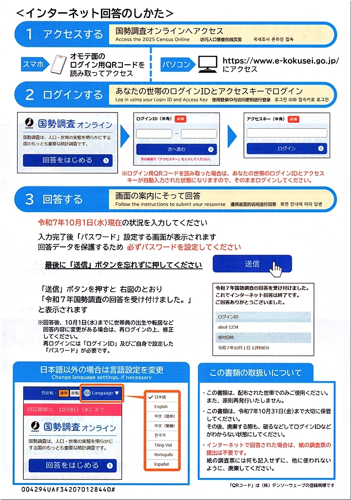 まぁ、このような事はさて置きまして、前回の2020年の国勢調査、そして今回と、またまた嫁さんは調査員に選任されましたようですねぇ〜