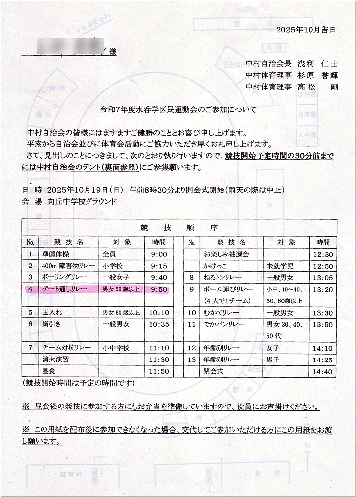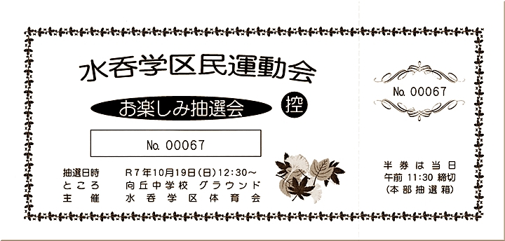 早速、眼を通してみますと水呑学区民運動会∞お楽しみ抽選券∞若草祭≠フ内容でありました。