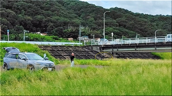 いつものように芦田川大橋下から上流方向に向かってウォーキングですけど、小水呑橋手前の駐車場では、ドローンをホバリングさせ、この状態のドローンをズッとカメラで画像に撮っておられるのか、それとも動画を撮っておられます男性が…