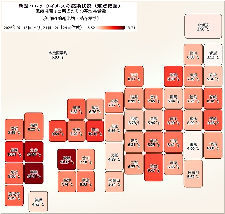 県によりますと9月15日から21日までの新型コロナウイルスの新規感染者数は1医療機関あたり平均で8.23人と、前の週と比べて1.08ポイント減少しました。