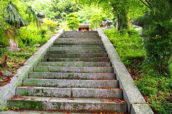 菩提梯はあまりにも急な階段なので、それを避けて車で西谷か東谷から久遠寺へ上がられる方が多いですが、仏教的な意味を考えた時には、是非、三門を潜り、菩提梯を上ってみていただければと思います。