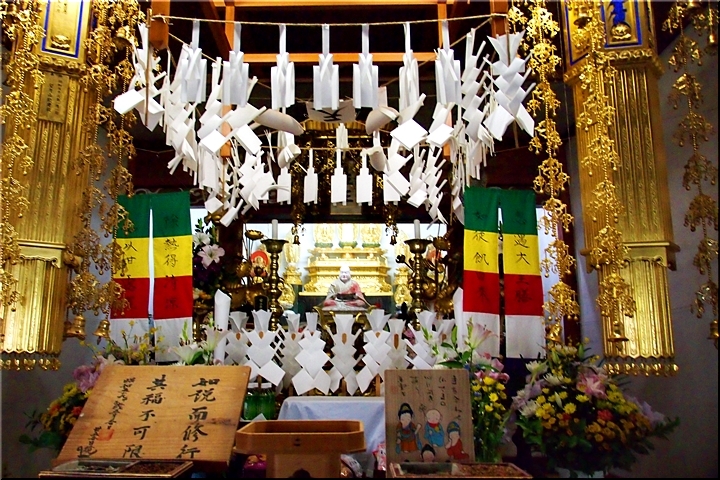 楼上の御像などは撮影禁止なので、写真をお見せすることが出来ないのが残念ですが、立派な釈尊像の他、ずらりと並ぶ十六羅漢像は圧巻です。是非タイミングを合わせて、お参りいただきたいと思います。俗説ですが、十六羅漢像のうち、一人は自分に似ている顔があるとか。