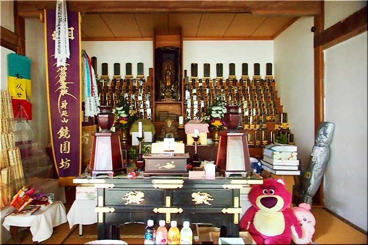 とにかく、念願叶い鏡円坊≠ノお参りです。ここでもまた本堂でのお参りを終えますと、行衣に御朱印をお願いです。お上人、大変丁寧でご親切な方で、行衣を雑にたたんでおりましたのに、キレイにたたみ直して戻して下さいました。
