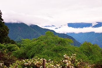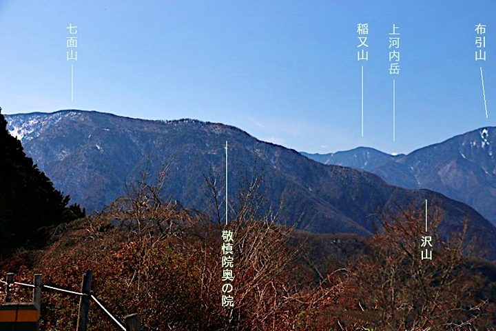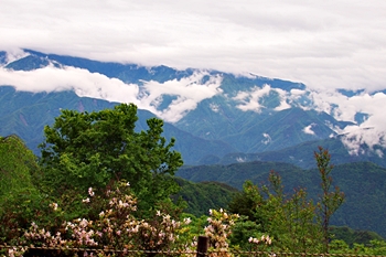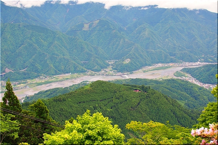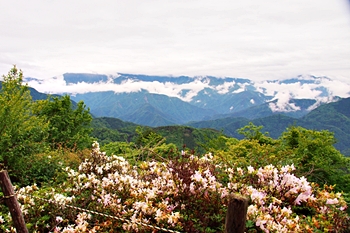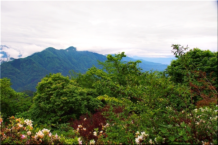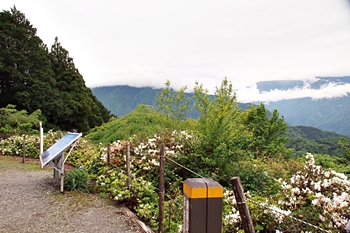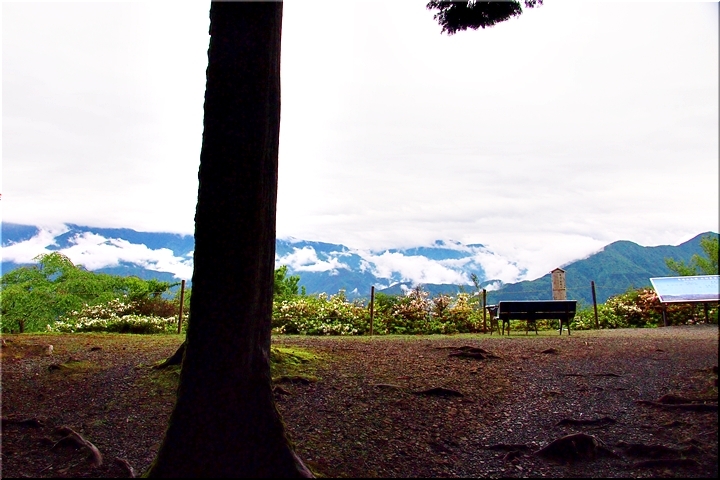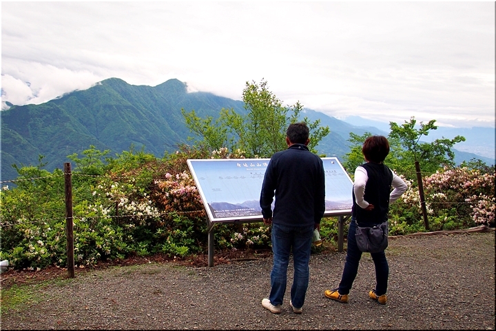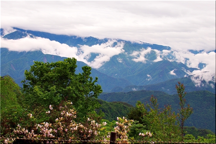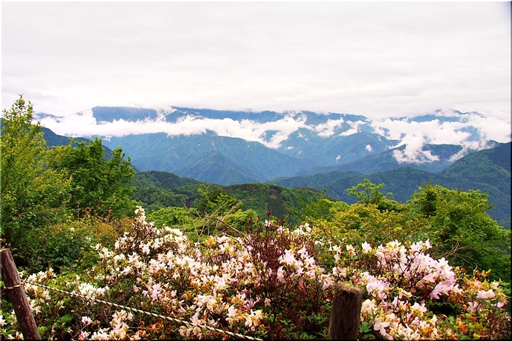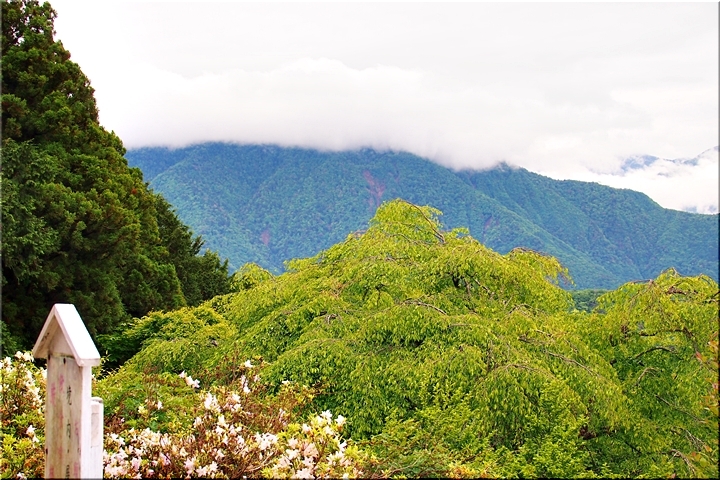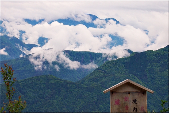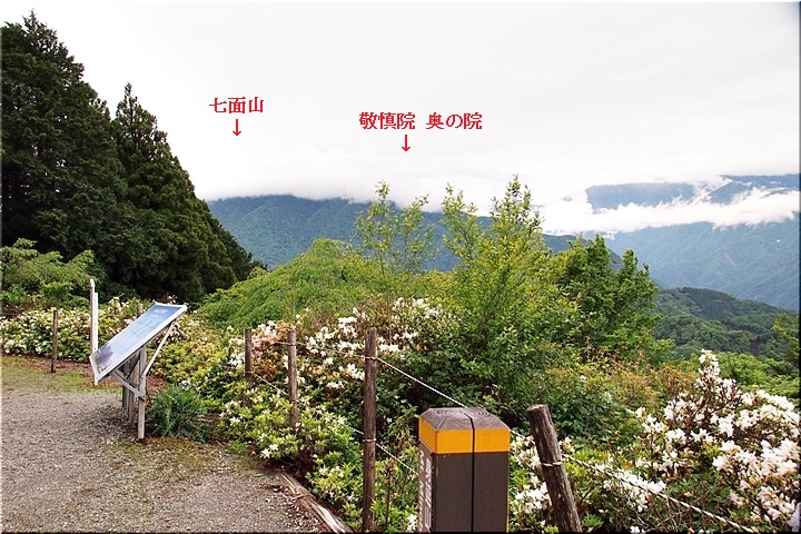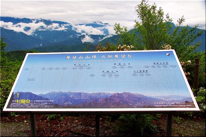 雲がありませんと、この北側展望台≠ゥらの七面山・南アルプス等の大パノラマが楽しめるのですけど、本当に残念。