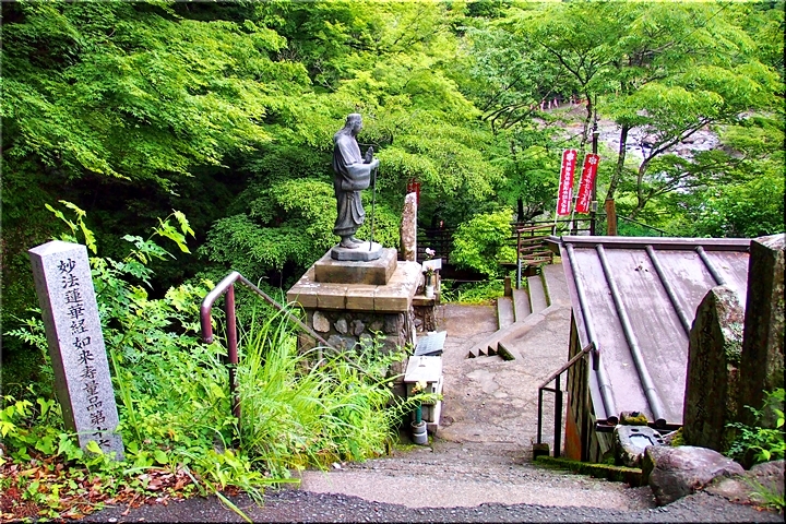 お萬の方像から200〜300mほど上流にあるのですが、前回は運動不足で七面山に登るのが精いっぱいで、雄瀧弁天堂(おたきべんてんどう)まで行かれなかったので、今回リベンジ、雄瀧を見に行ってみました。