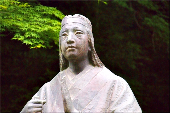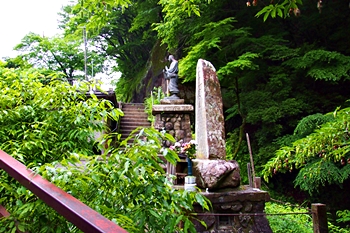 羽衣白糸の滝・お萬様の像≠充分拝観しまして時間を確認しますと、16:30少し過ぎ。うん、うん、イィ時間となりましたネ。弁天堂・勇姿の滝≠ヘ、明日拝観します事にし、この辺でお萬様の像≠ニお別れです。