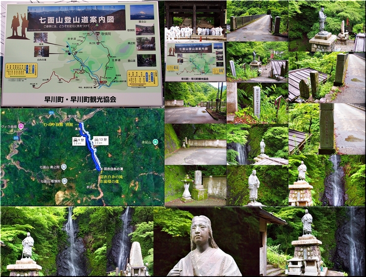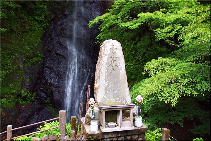 以前は、七面山は女人禁制ので登ることができませんでしたが、江戸時代に徳川家康の側室であった「お万の方」がこの滝で身を清め七面山に登り禁制を解いたことで有名になったと言われています。