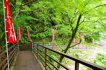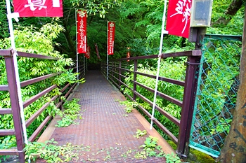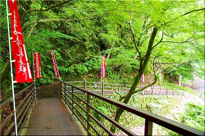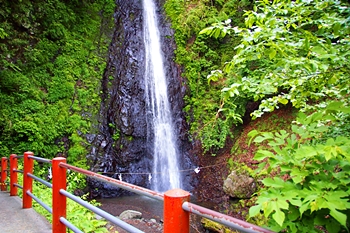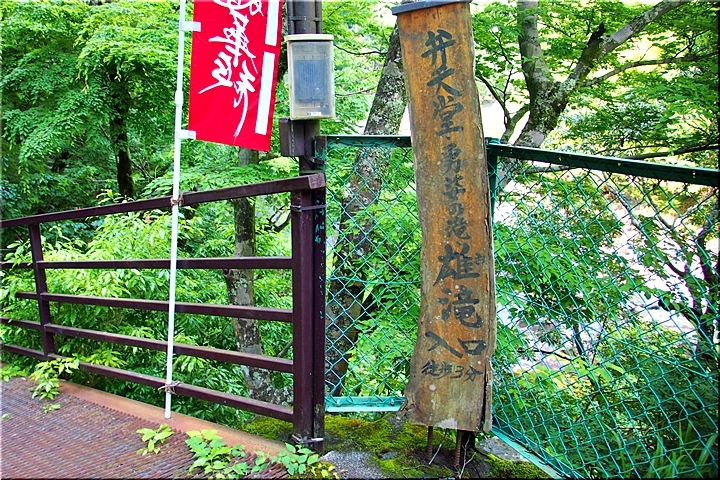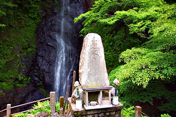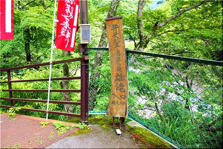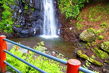 ここには、雄滝弁天堂があり、修行者の行場として全国的に有名なところで本格的な滝行が行えます。滝つぼの前にはしめ縄が張られており、神聖な雰囲気です。