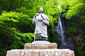 雄瀧は、七面山の女人禁制を解いた徳川家康の側室お万の方の像が立つ女瀧(羽衣白糸の瀧)と一対の関係。現在は男女別の更衣室や行衣も備えられ、プロゴルファーの諸見里しのぶさんなどの著名人をはじめ全国から多くの信者が訪れている。