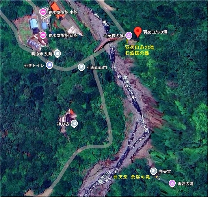 羽衣白糸の滝で滝行をする人が現在でもいるとのことですが、滝の周辺は増田屋旅館の私有地なので滝つぼに入り滝行する場合は、事前に連絡が必要です。