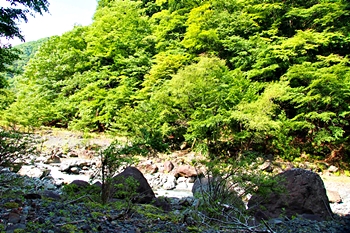 一方、勇姿の滝は春木川に注ぐ樽沢にかかる滝で、羽衣白糸の滝から少し遡るところにあり落差30mの直瀑です。勇姿の滝は、別名雄滝とも呼ばれ羽衣白糸の滝と一対の滝となっています。