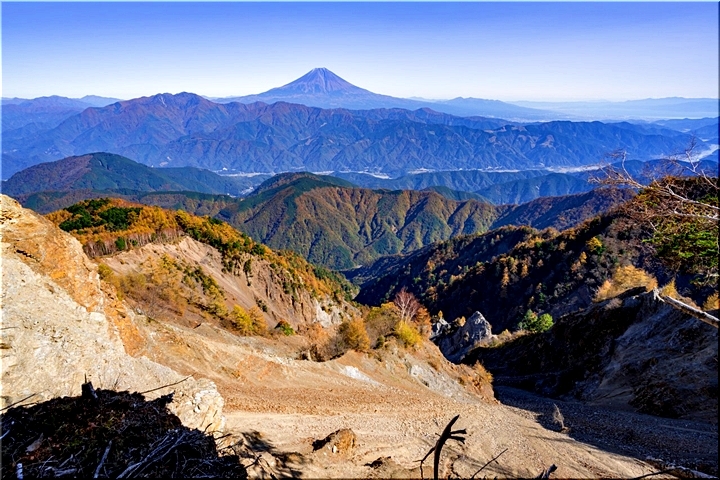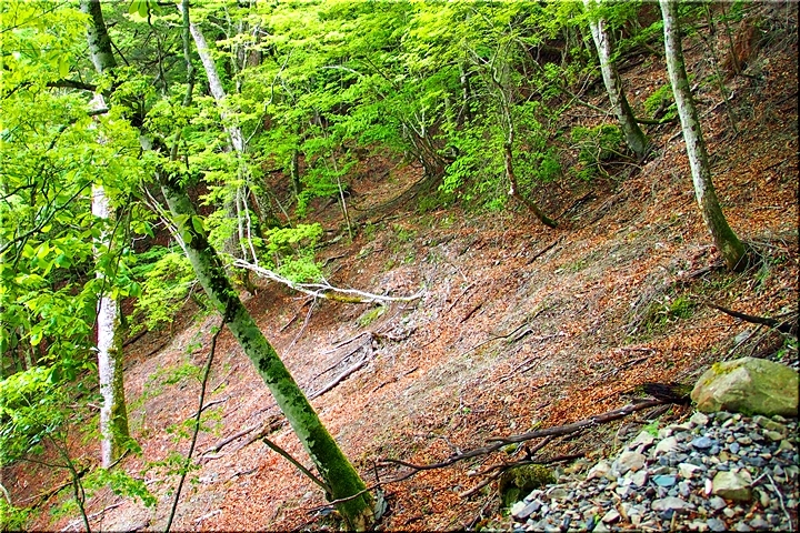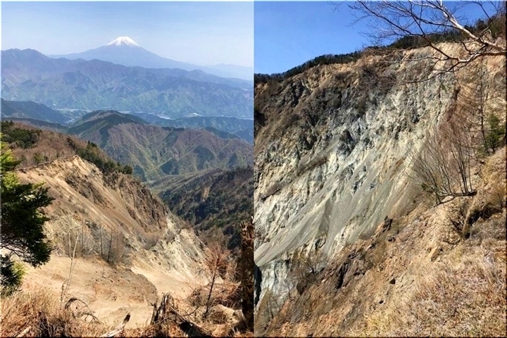 池から南へ登ると、崩れゆく針の山に出くわす。地獄の底まで果てなくなだれ落ちた山腹。遠くからでも一目でこの山をそれと判らせる「ナナイタガレ」である。