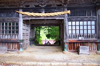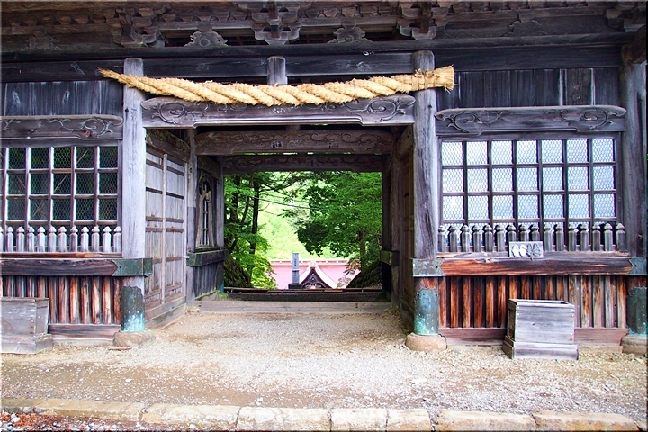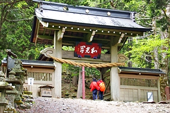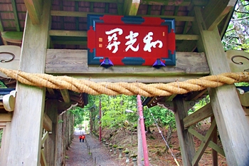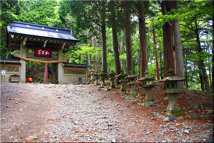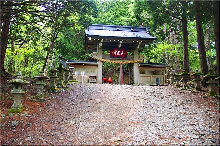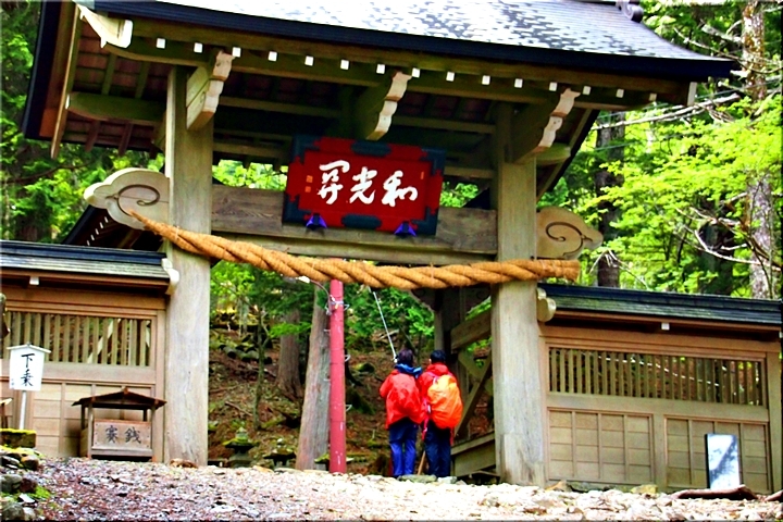 つづら折れの道を曲がりますと、目の前に和光関と書かれた扁額のある門があらわれますが、これが和光門です。山頂の入り口で、このすぐ先が七面山本社のあるところです。