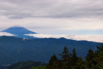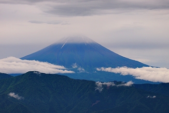 見るからに険しい海抜六千尺を越える人跡まれな深山の頂上近くに突如現れた天上の楽園のような平坦地。その一角には碧水を湛えた神秘の池がある。池の東の高みに覗く気高い台形は何だろう。その高みへとひと登り、徐々に姿を現すのはやはり霊峰富士、天子山塊を圧してあまりにも大きくそびえ立つ。
