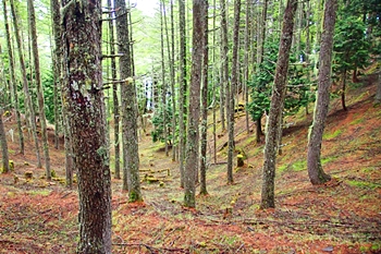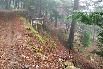 先ほど、敬慎院から奥の院に向かっておりましたら、二ノ池≠すぎた辺りにも県指定天然記念物 七面山の大イチイ これより約400m→≠フ標識がありました。覗いてみますと結構緩やかな下り道に感じました。が、影嚮石§eからの下り道は、結構、急なような(^-^;