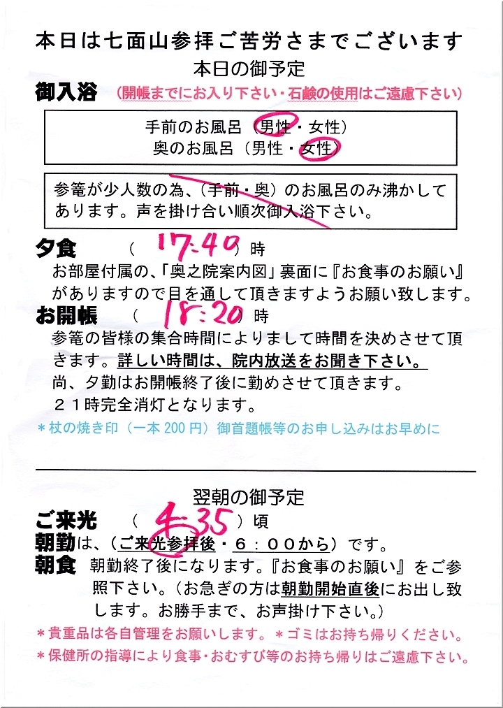・携帯電話の電波はdocomo以外圏外の可能性が高いです!→但し、宿坊内には無料Wi-fiがありましたので有難い。