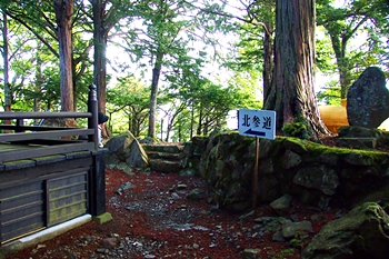 奥の院本堂横に北参道(裏参道)≠ヨの入口がありますけど、下山前に御神木(大イチイ)≠ノ向かわなくては…