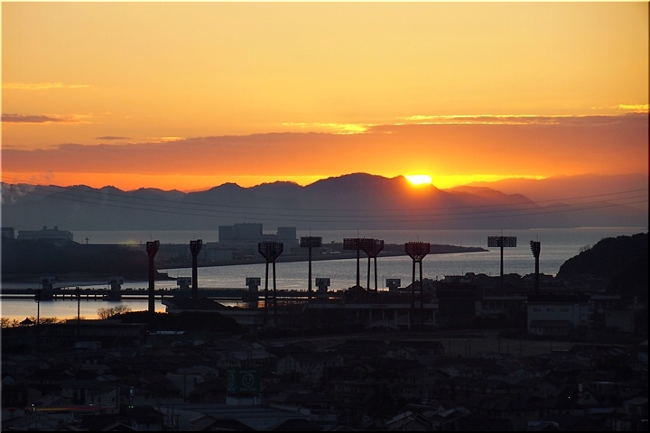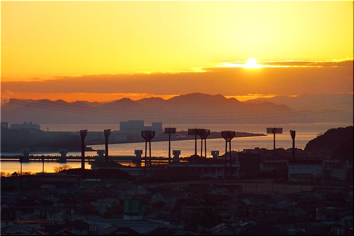 暫く待機しておりますと、空がオレンジ色に輝いてきましたから、ソロソロですネ。初日の出が顔を覗かせましたのは、A.M.07:06でありました(^.-)☆