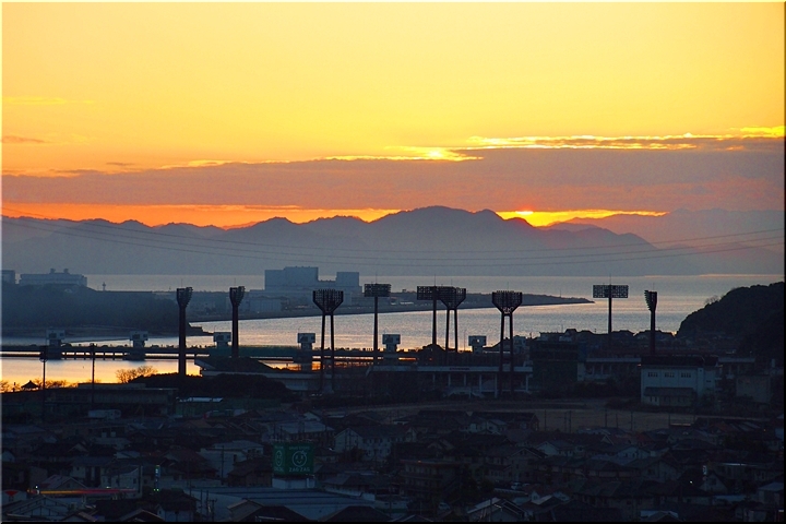 例年、初日の出は、07:13頃ですから、未だユックリ出来ますけど、向かいましたのは白萩団地の市営住宅。この敷地内から我が町を見渡せますから、ここから初日の出を捉えようかと(^-^)