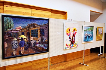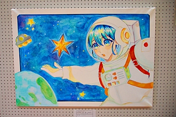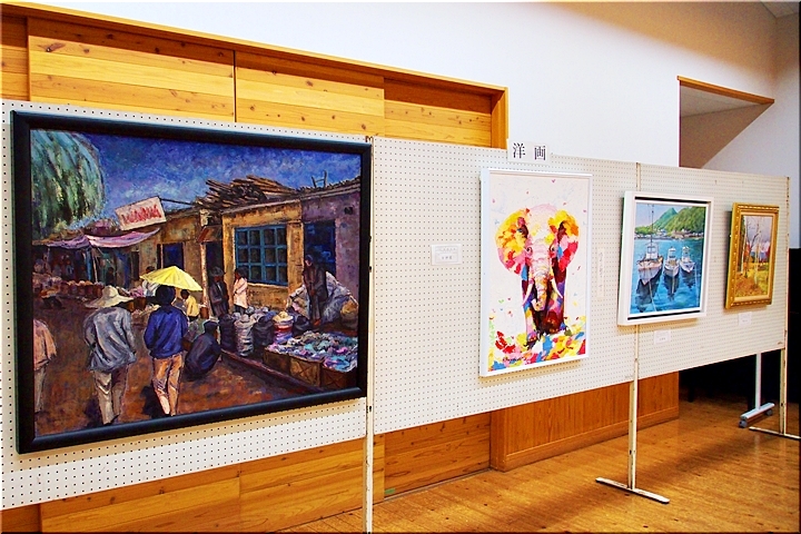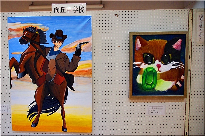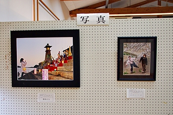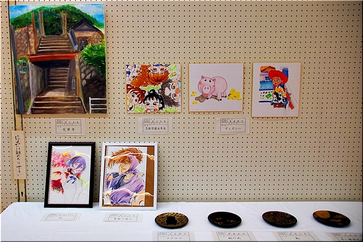 時間を確認しますと、未だA.M.9:25で、スタート時間の10:00には暫く時間がありますから、先に受付のみ済ませまして、史跡めぐりの資料を頂き、まずは交流館内の作品展示コーナーを拝見します事に(^.-)☆