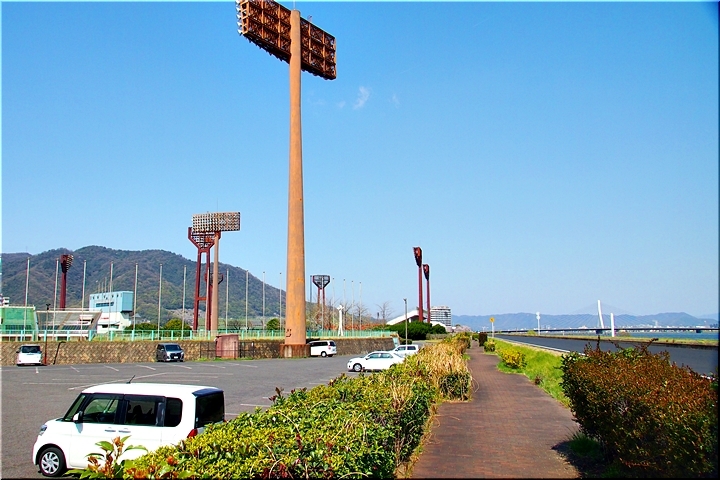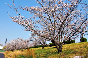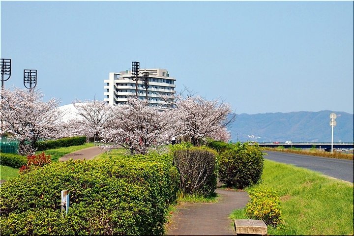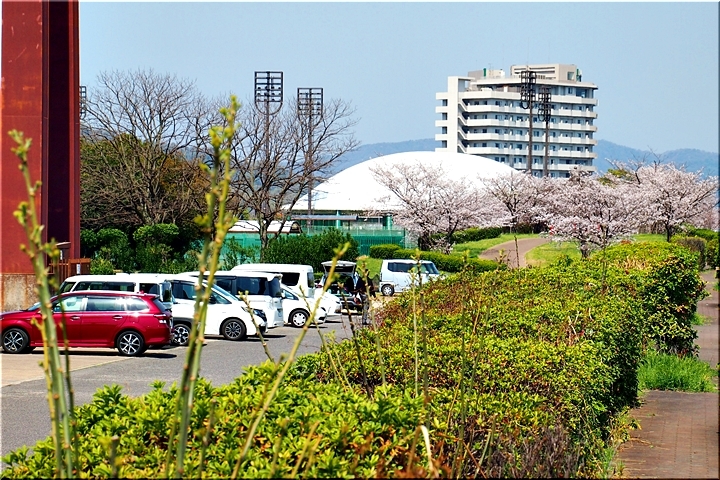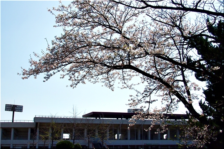 こんな景観に眼を向けながら、陸上競技場の外周を一周し、穏やかな春の日差しの下、ノンビリと市民球場方向に戻ります。そぅしていますと、ウォーキングロードサクラ並木に戻って来ましたネ(^-^)//"