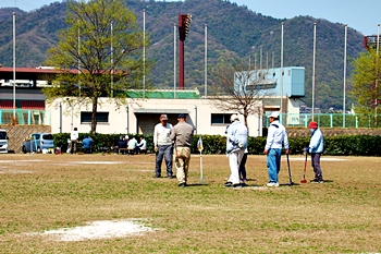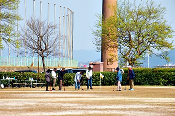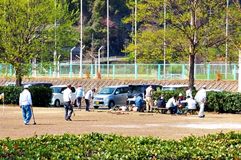 弓道場と陸上競技場との間のサブグラウンドでは、どんな方達なんでしょうネ…14、5名の皆様でGGを楽しんでおられましたネ。