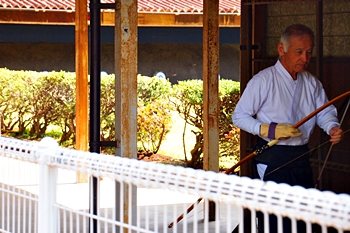 陸上競技場の水呑川沿いの遊歩道にはサクラはありませんで、イチョウ並木が続きます。そして、弓道場にとヤッて来ました。