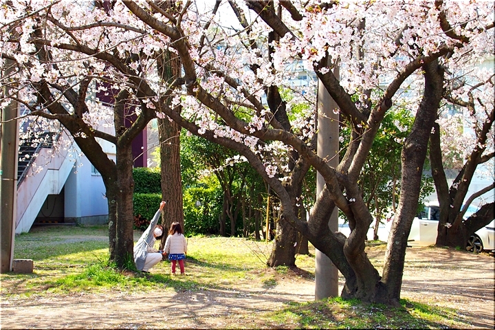 4/7(月)午前中は、竹ヶ端運動公園テニスコート横のサクラ並木を散策でした(^.-)☆(04)