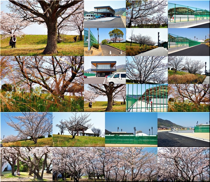 生まれ変わったテニスコートとサクラ並木…交互に眼を向けながらの散策ですけど、供用開始から未だ2週間のテニスコートは、さすがにキレイです。
