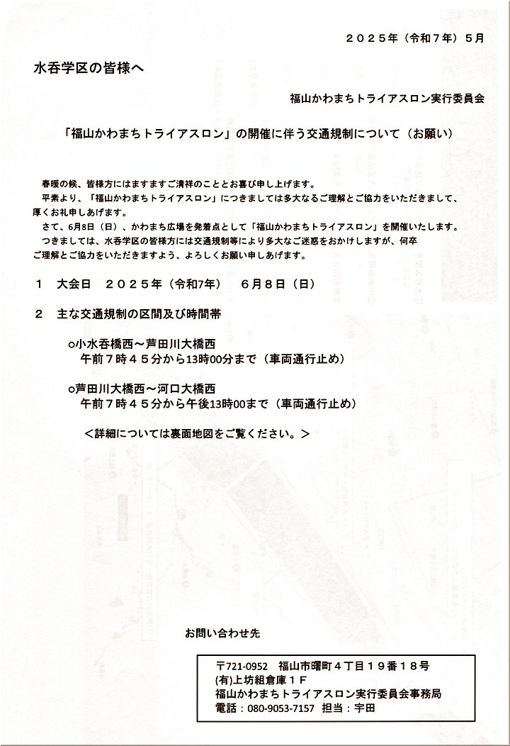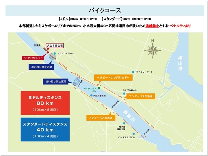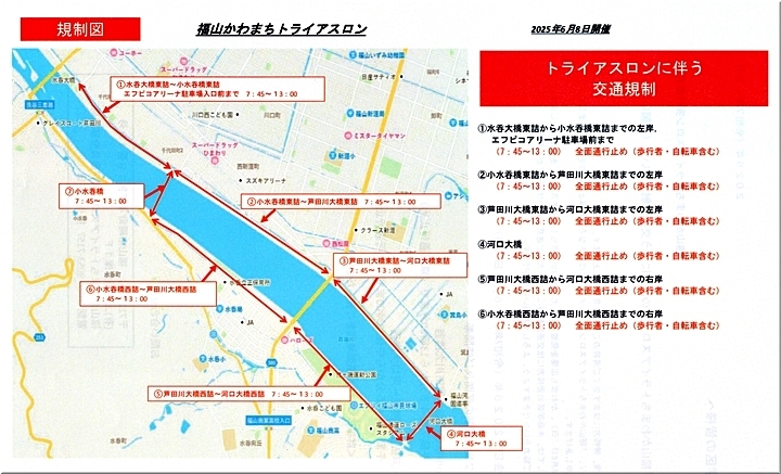 「んっ、何で!?」と、一瞬、不思議でしたけど、そぅでした、この日は「福山かわまちトライアスロン2025」の開催日でありました。