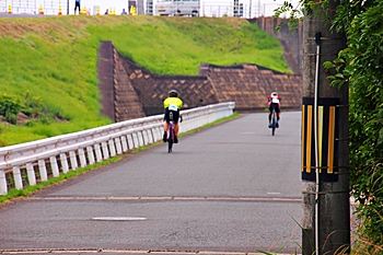 土手から下って来ます選手が、もし、ハンドル操作を誤って結構なスピードで直進して来ましたら…と、こんな不安が時たま脳裏をよぎります。