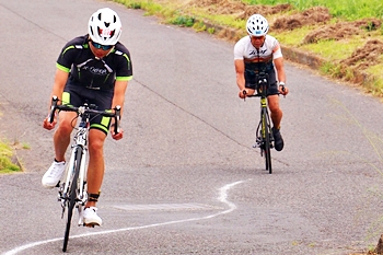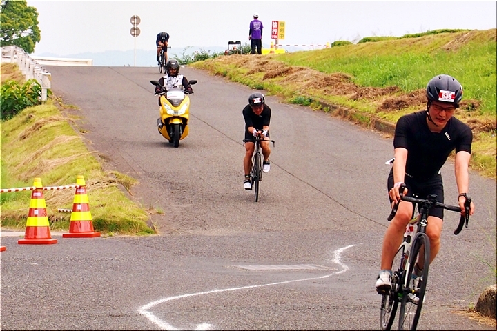 バイクが追走していますスグ前の選手が、多分、トップか最後尾の選手なのかも…