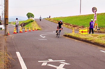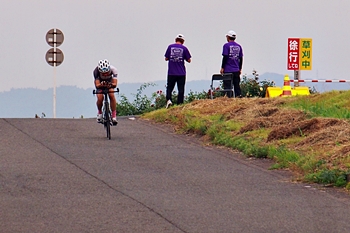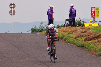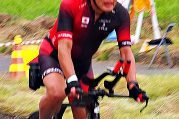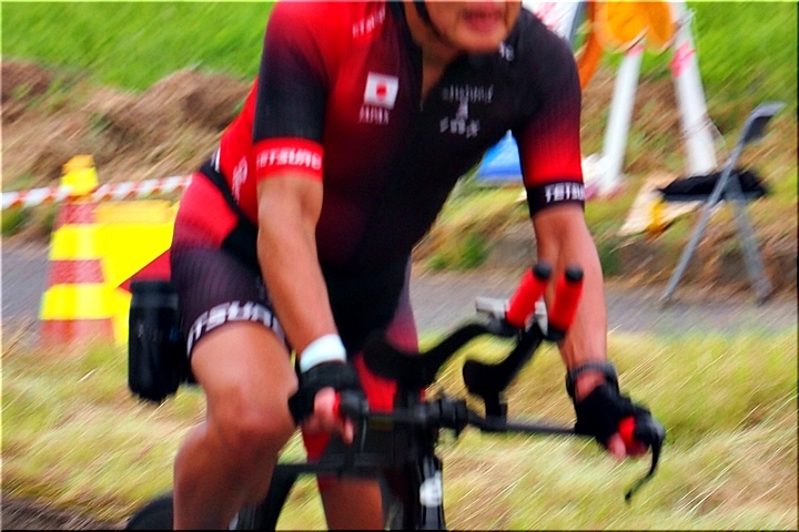 …と、帰ろうとしますとJAPAN≠フマーク入りのウエットスーツを身に付けましたゼッケン300≠フ選手が通過です。きっと、色んな大会に出ておられるのだろうなぁ〜と、これまた後日、WEB上で確認してみましたら、