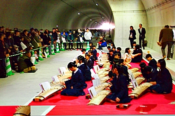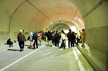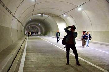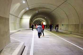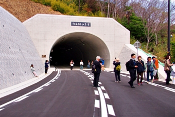 そぅそぅ、GONsanの職場には、沼隈町の常石でしたか…能登原でしたか…この方面から通勤しておられます方がお一人おられます。今までですと、海岸沿いの擦れ違いもままならない狭い市道の走行を余儀なくされておりましたけど、このトンネルの開通で随分楽になられたものと思います。