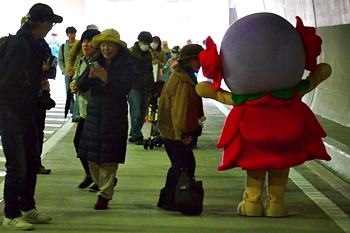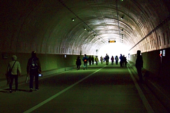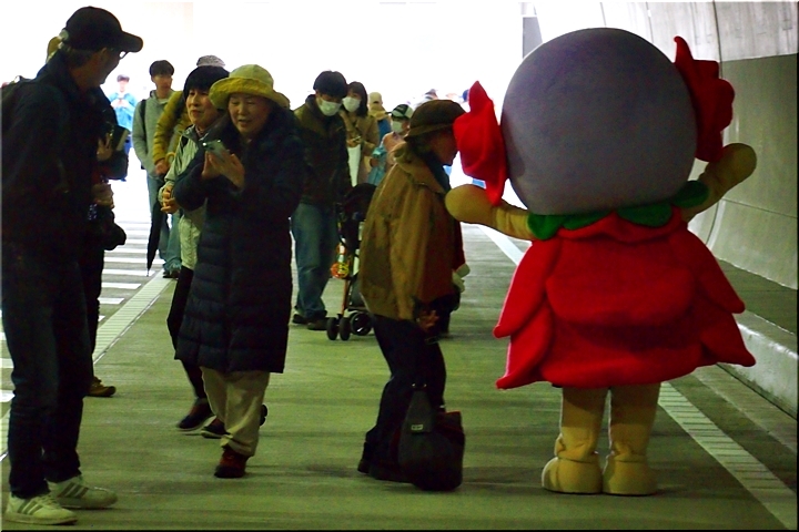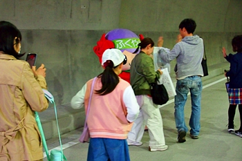 スタート地点の御幸地区入口≠ワで戻って来ますと、今からトンネル内のウォーキングを楽しもうと言う方々を、ローラチャンが優しく迎えておりました(^.-)☆