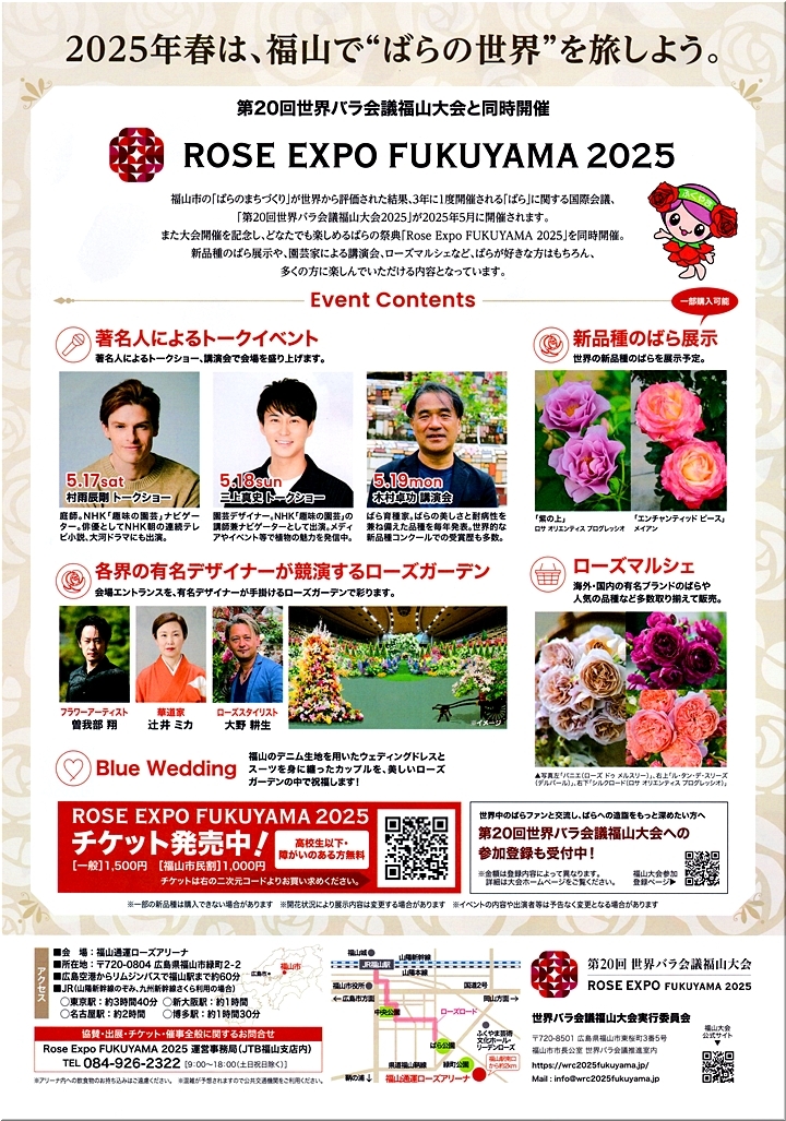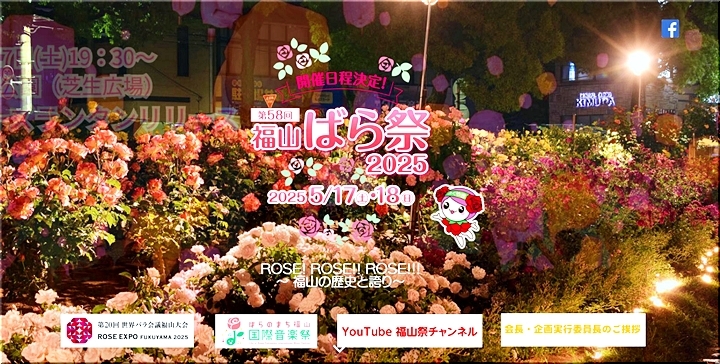 来月の世界バラ会議♀J催中には、5/17(土)〜5/18(日)の2日間福山ばら祭り♀J催も重なりますから、大変賑わいます福山市内なんでしょうネ(^.-)☆