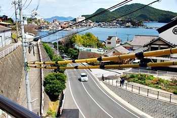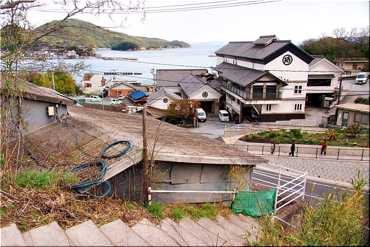 眼下には阿藻珍味sanの鯛匠の郷・食遊館=Aそして、その後方の仙酔島方向には円福寺=Bイィ景観ではあるのですけど、鞆未来トンネル開通となりましても、別段、目新しいモノも無く変わり栄えしません景観ではありますネ。