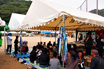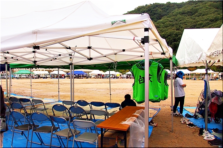 開会式が始まります08:30前に到着しましたけど、本部テントに眼を向けましても、とても始まります状況でも無さそうでしたネ。ですから、とりあえず中村自治会のテントへと(^-^)