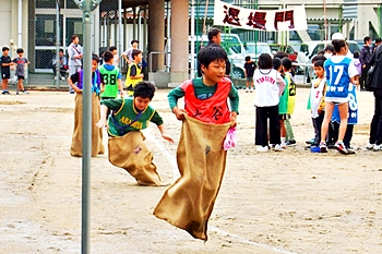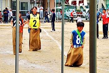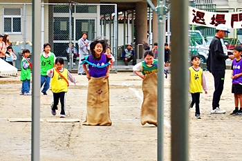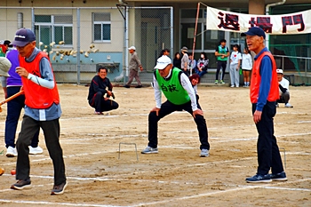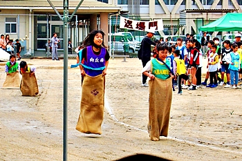 昨年の学区民運動会では、GONsanは、何とか一度でゲートを通りましたけど、毎朝のGGでいつもお上手なKsanが、ゲート通しリレー≠ナは1回、2回、3回と入りませんで、4回目にヤッと通過。