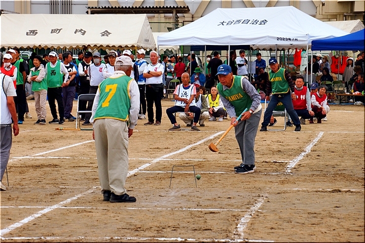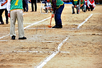 この種目も観ています者には大変面白いのですけど、やってるご本人は四苦八苦。ボールを転がし1本のビール瓶を倒す競技ですけど、これが仲々瓶に当たりませんし倒れないのですねぇ(^.-)☆