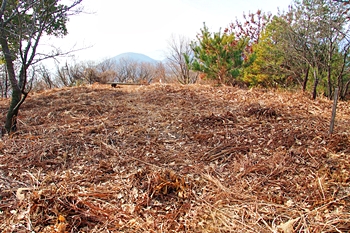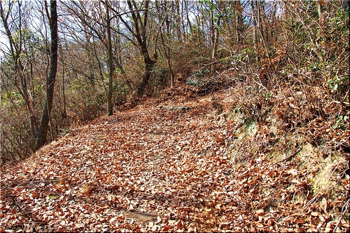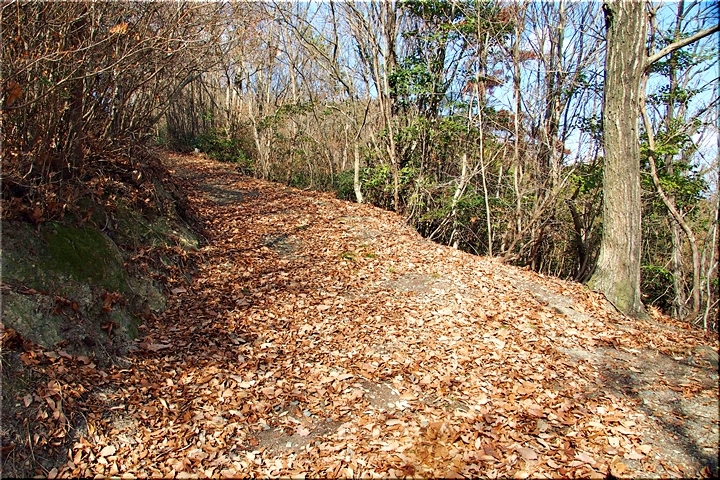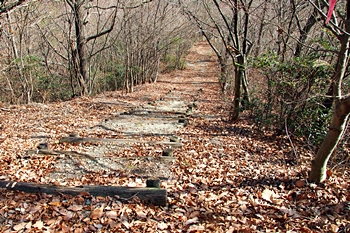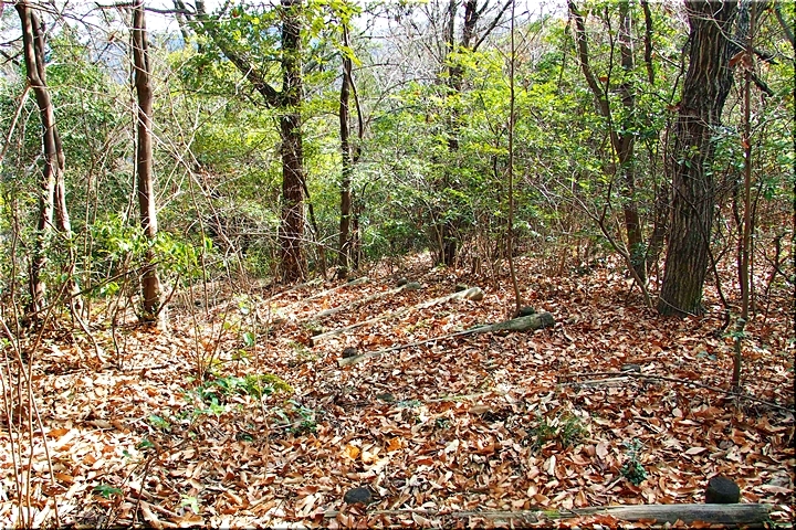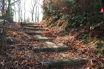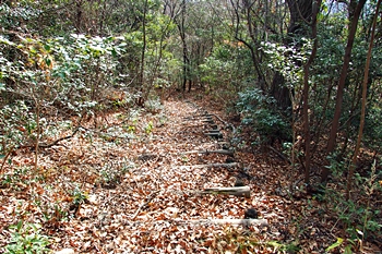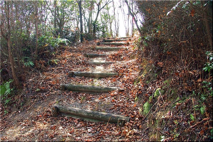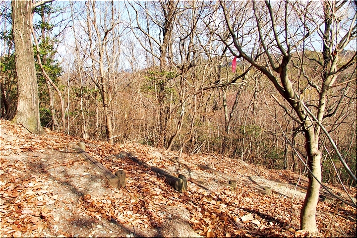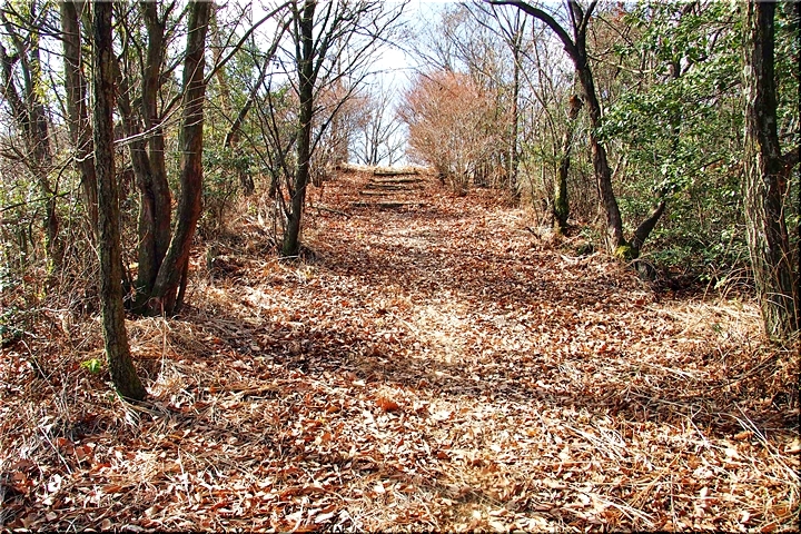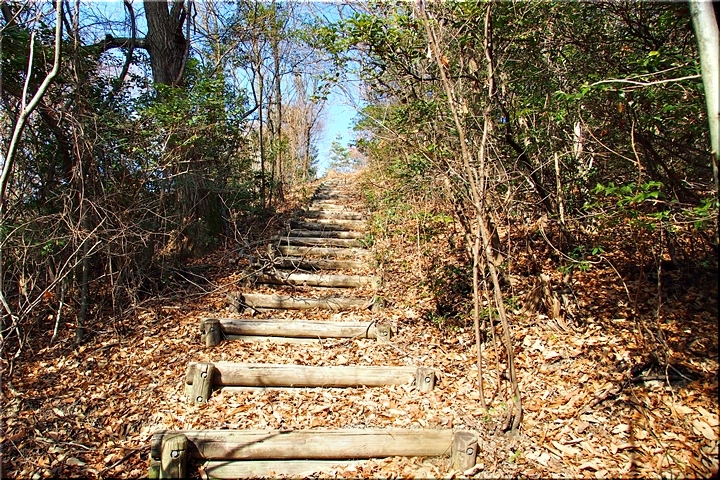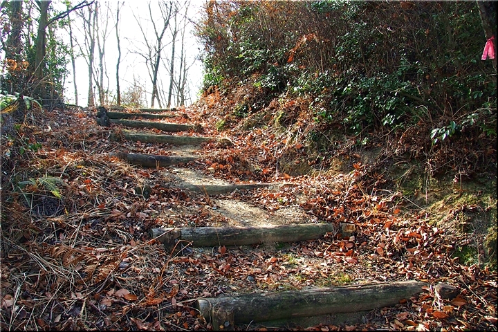 整備されました階段を上がって行きますと、前方が樹木に遮られていますような…でも、左側の斜面が開けていますので歩行続行です(^-^)//"