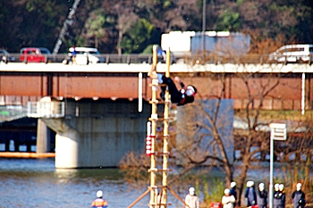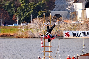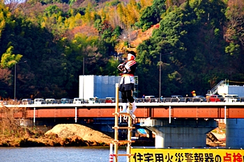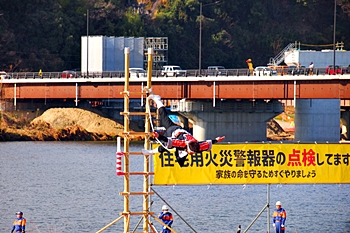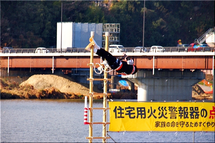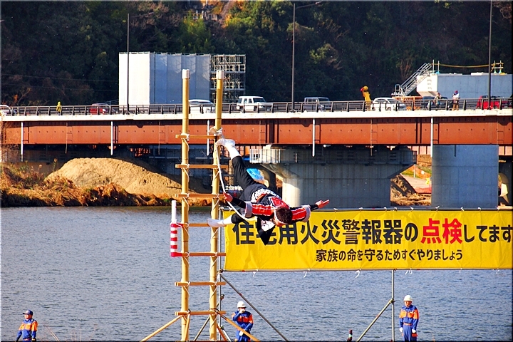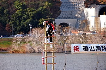 こぅして見物しておりますと、ハシゴの高さも気になりませんけど、実際にハシゴの先端に立ちますと凄い高さに感じますのでしょうし、下でハシゴを支えます方々への信頼感は欠かせません。大変お疲れ様でした≠ナす(^.-)☆